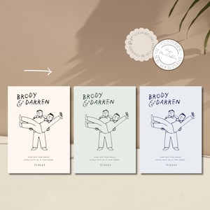 Tag : Gay Wedding Invitation Set Template Mr Mr Cute People Hand Drawn Scribble Illustration Fun