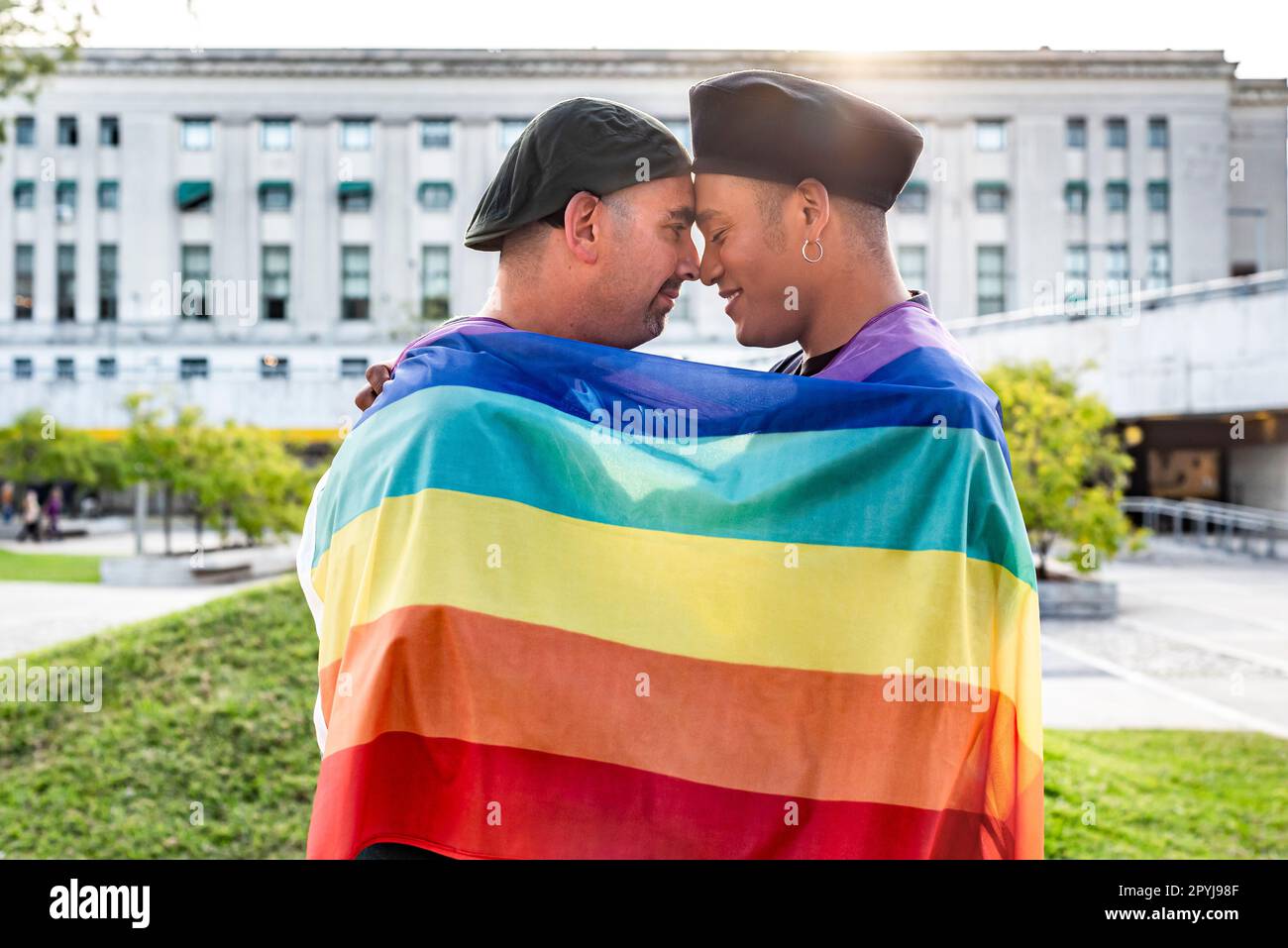 Gay Couple Under LGBT Rainbow Flag While Laughing And Looking At Each Other Concept Of Pride pictures has 500 x 400 · 50 kB · jpeg.