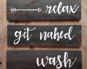 Tag : Get Naked Relax Unwind Signs Bathroom Wall Decor Spa Sign Rustic Wood Sign Modern