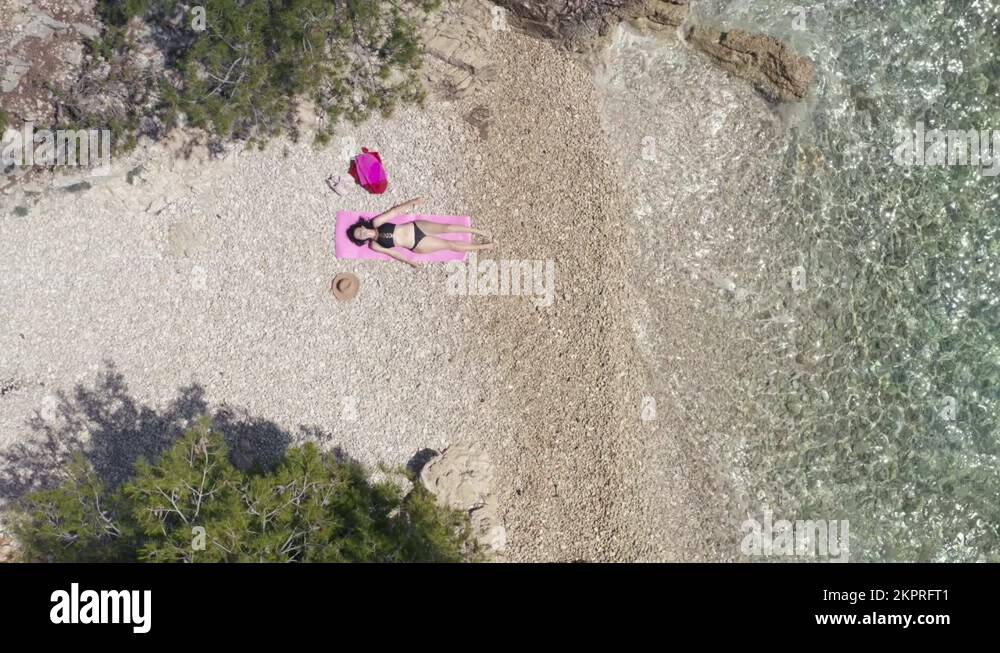 Girl In A Bikini Lies On The Beach Near The Sea Top View Aerial Stock Video Footage Alamy is a popular picture for sexy and hot.