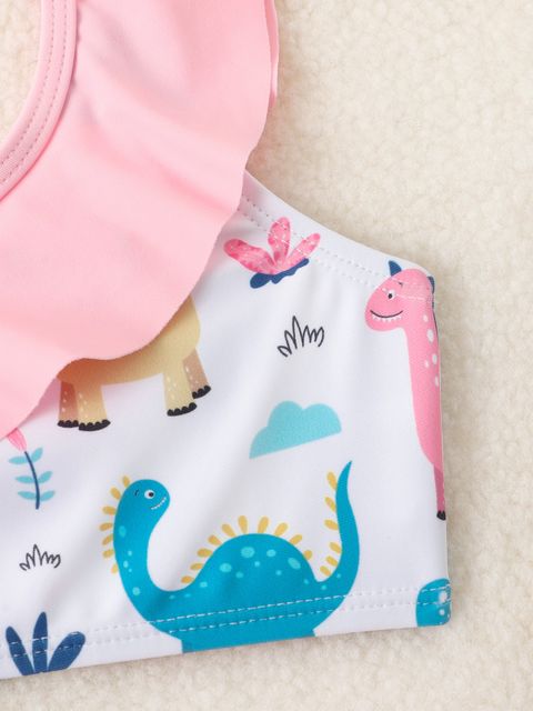 Girls Cartoon Dinosaur Ruffle Trim Asymmetrical Neck Ruffle Hem Bikini Swimsuit Lynks Shop is a popular picture for sexy and hot.