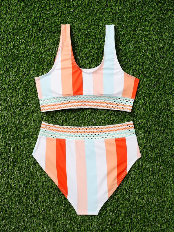 Tag : Girls Colorblock Tape Detail Bikini Swimsuit SHEIN USA