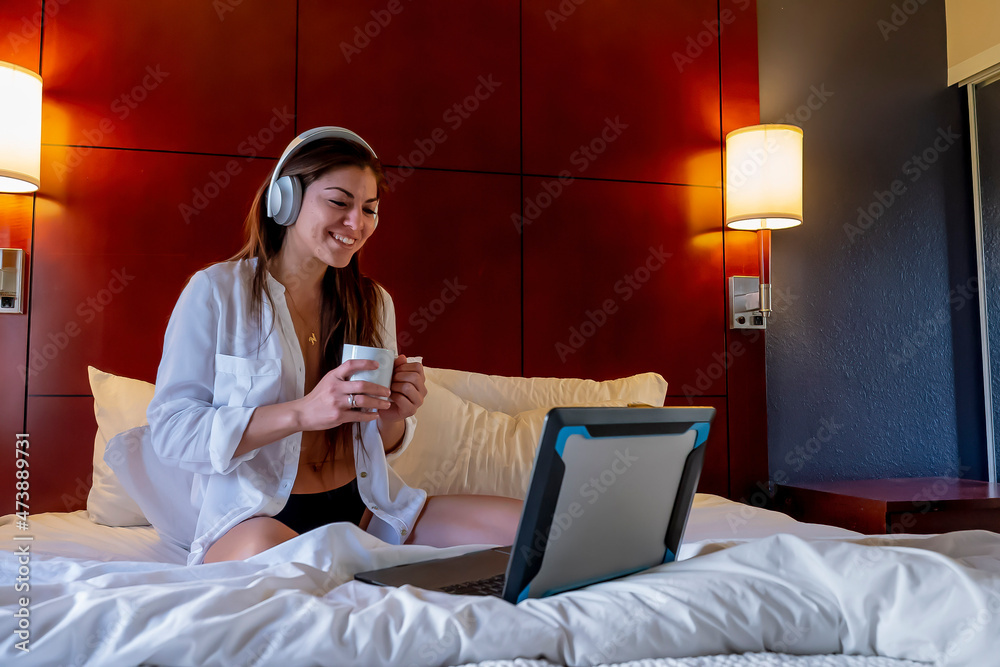 Gorgeous Hispanic Model Works On Her Computer As She Poses In Lingerie In A Bedroom Environment is a popular picture for sexy and hot.