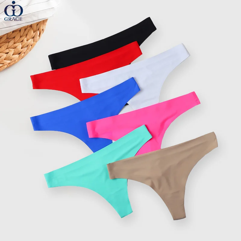 Grace Custom Logo Ice Silk Traceless Tangas No Show Private Label Bikini Custom Thongs Panties
