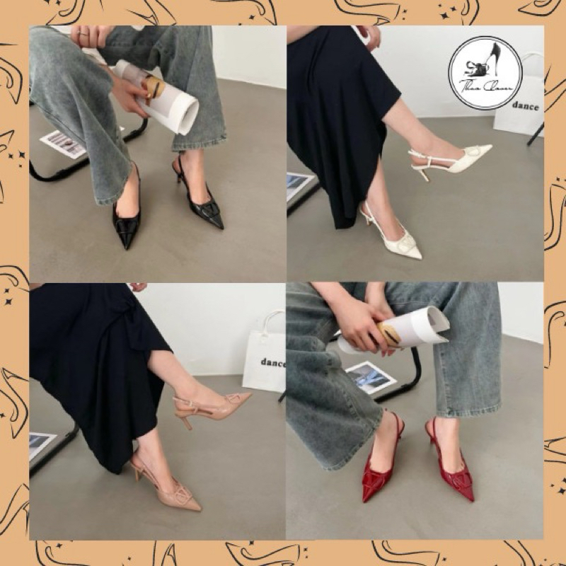 Tag : HÀNG MỚI VỀ Giày sandal tag B cao gót da bóng 2 loại 5cm 7cm 4 màu Đỏ đô Đen Trắng Hồng nude