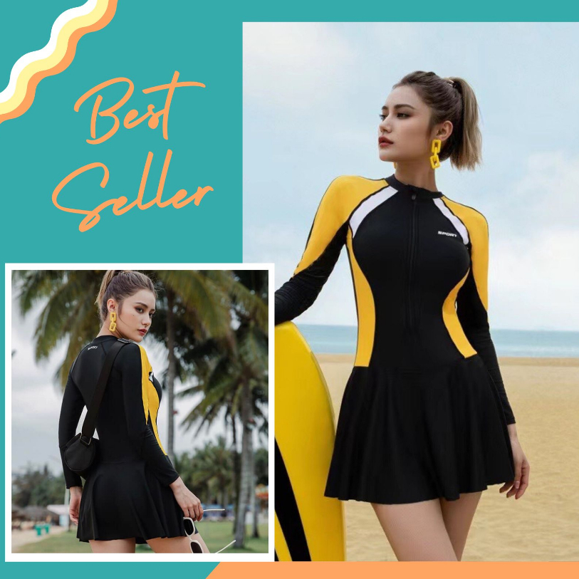 Tag : HÀNG QUẢNG CHÂU CAO CẤP Set Bikini Đồ Bơi Đi Biển Liền Mảnh Chân Váy Phối Viền Vàng Xám MỚI