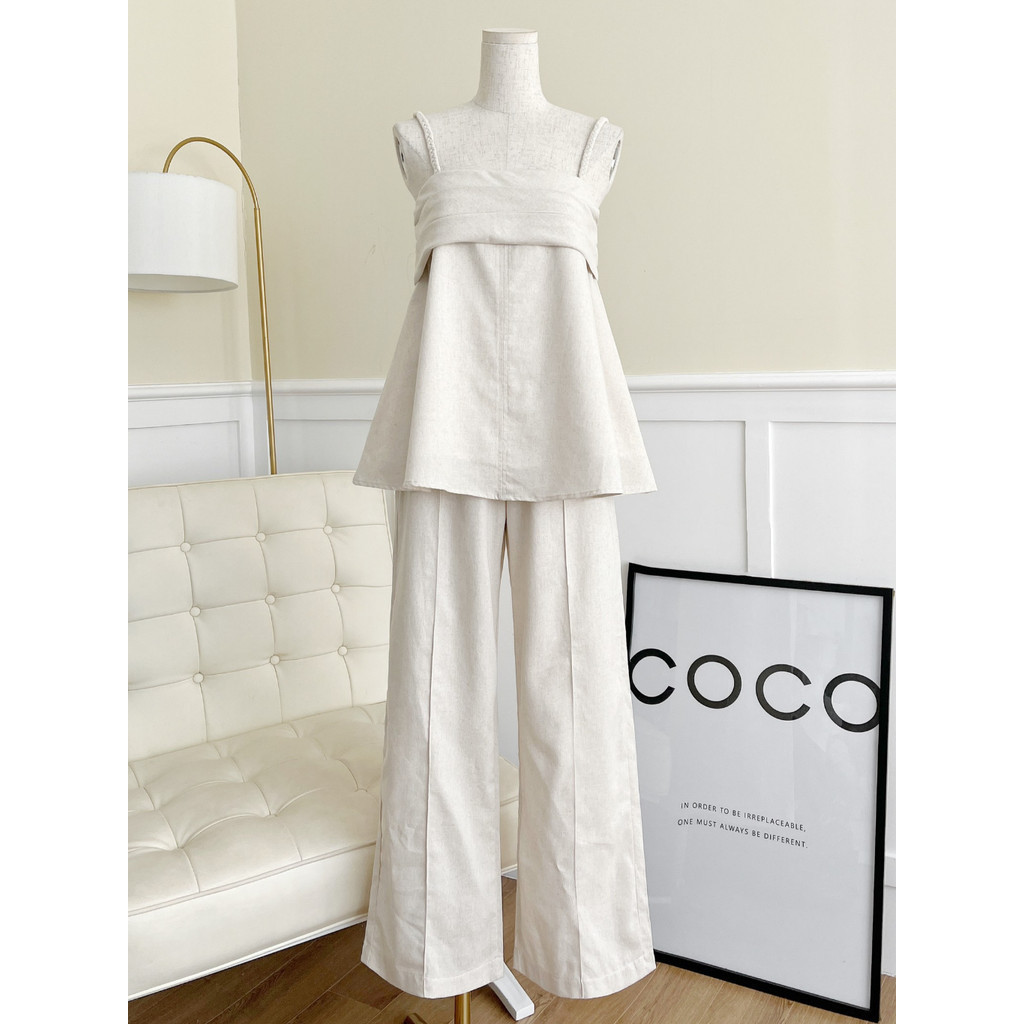 Related pictures for HỎA TỐC HCM Set linen nude 2 dây xếp ly chanh sả Shopee Việt Nam