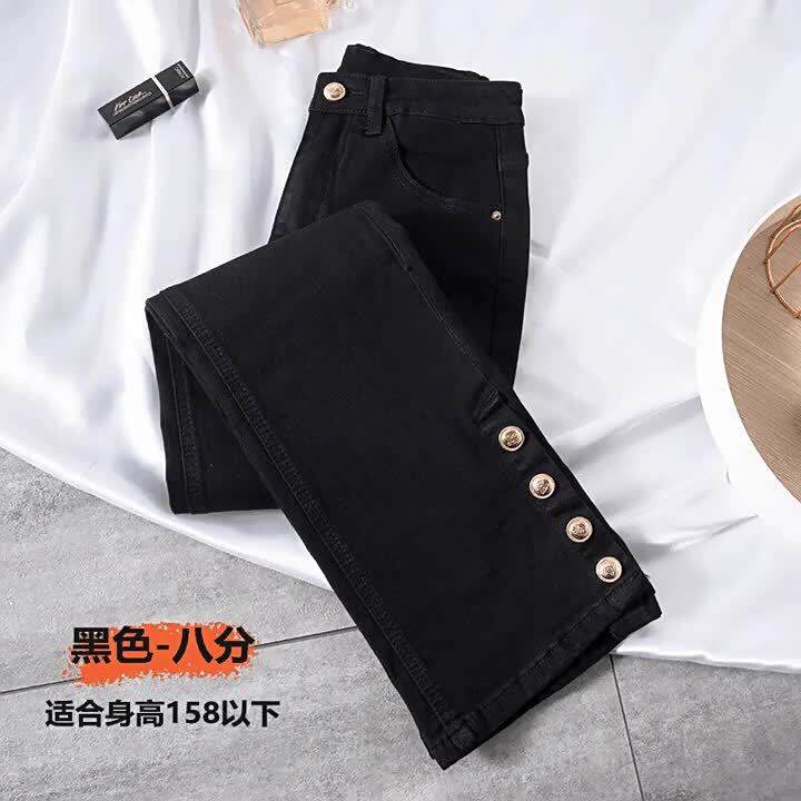 HOT กางเกงยนสทรงบานเลกแปดสวนผหญงแหวกฤดใบไมผลใหมเอวสงกางเกงขาบานสออนเกาสวนเลก is a popular picture for sexy and hot.