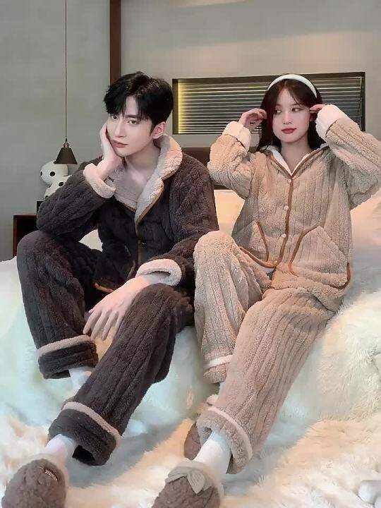 HOT ชดนอนผหญงขนแกะปะการงฤดใบไมรวงและฤดหนาวหนาขนสตดกนปกเสอคารดแกนแขนยาวชดใส 0