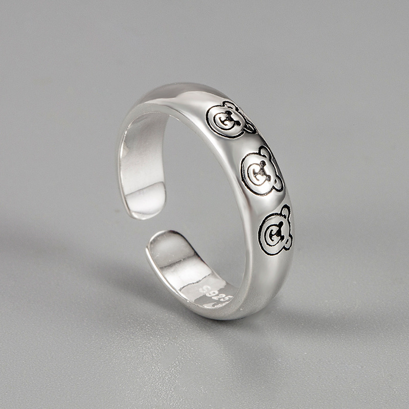 HOT สไตลเกาหลทเรยบงาย INS บคลกภาพนารกเรยบงายแหวนหมสามตว 925 แหวนเปดวนเทจพมพ is a popular picture for sexy and hot.