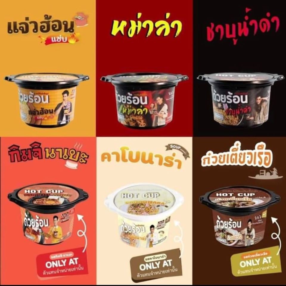 HOT CUP บะหมถวยรอน มามาถวยรอน หมาลา ชาบนำดำ แจวฮอน กมจนาเบะ คาโบนารา ถวยละ