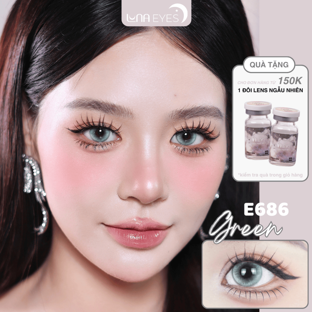 HOT Kính áp tròng LUNA EYES E686 GREEN lens hot douyin size to Shopee Việt Nam