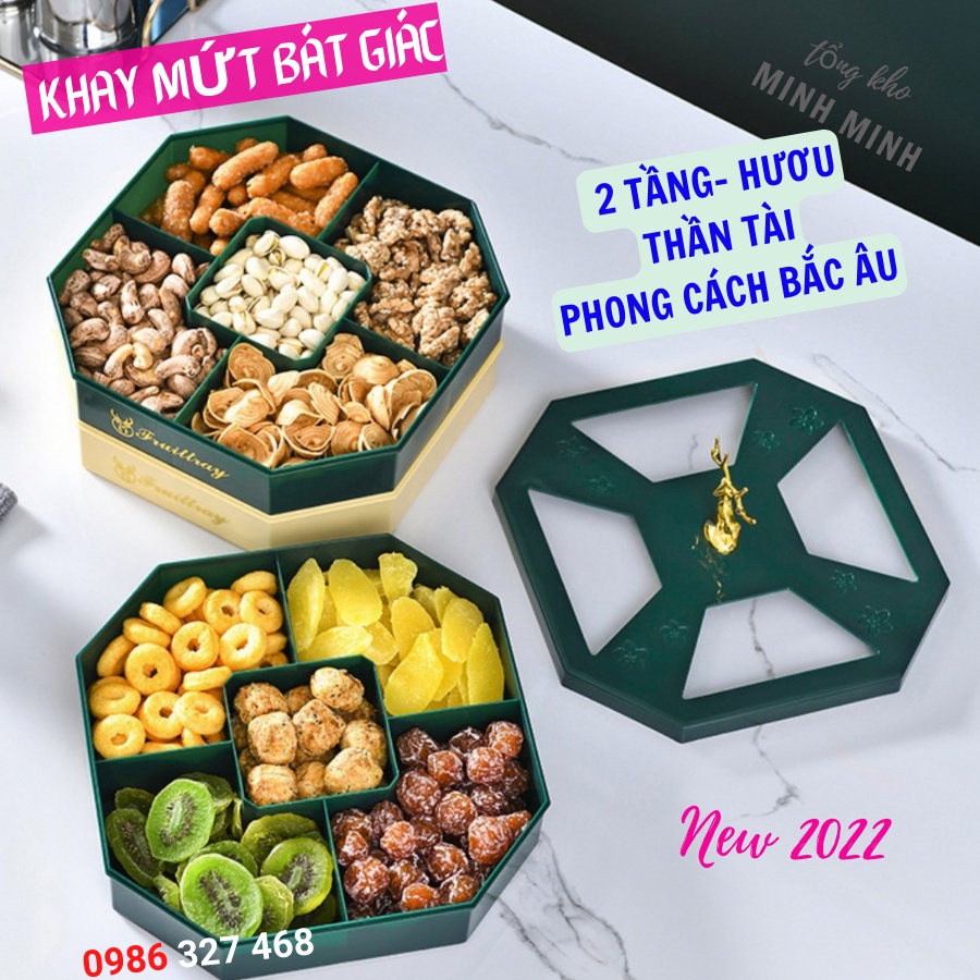 HOT Khay mứt tết khay mứt Hươu Tuần Lôc Hiện Đại Sang Trọng Phong Cách Bắc Âu 1 TẦNG VÀ 2