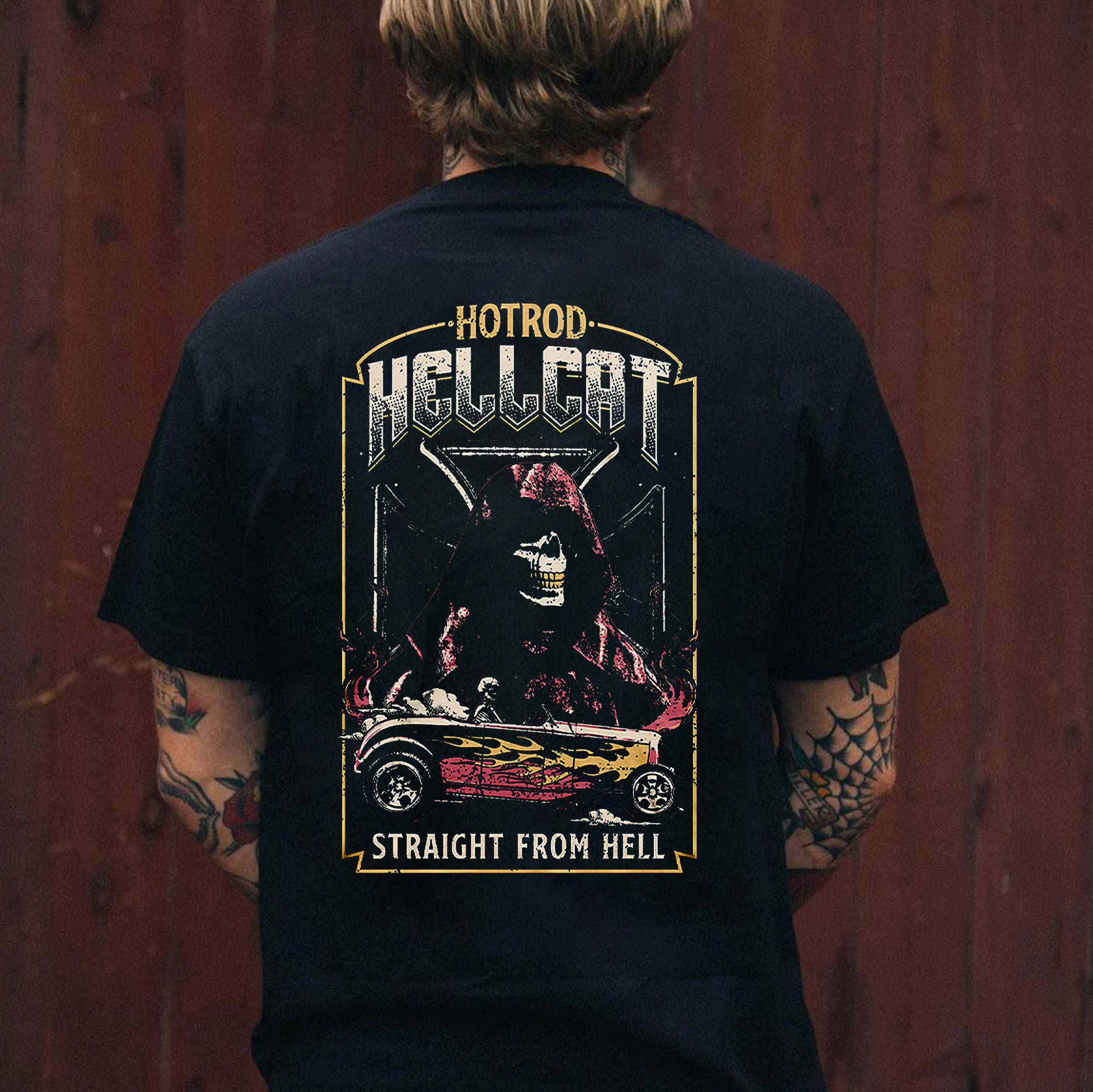Tag : HOT ROD HELLCAT Skeleton Classic Car Print Men S T Shirt