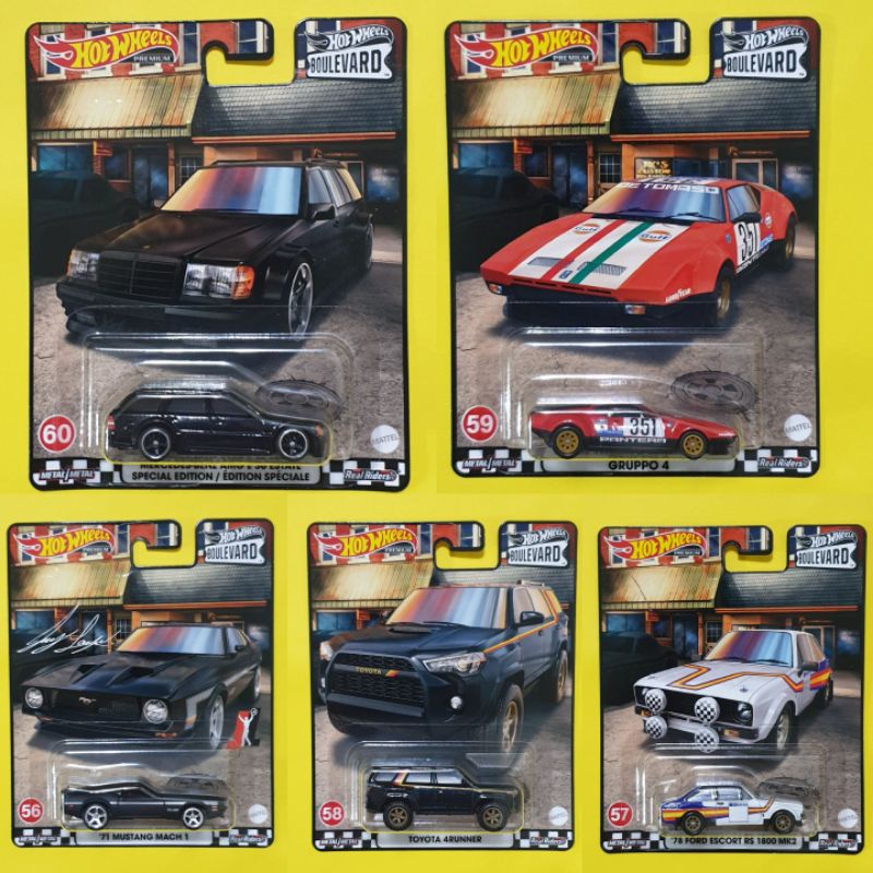 Tag : HOT WHEELS BOULEVARD DASH M MERCEDES BENZ AMG ESTATE DE TOMASO MUSTANG MACH FORD ESCORT TOYOTA 4