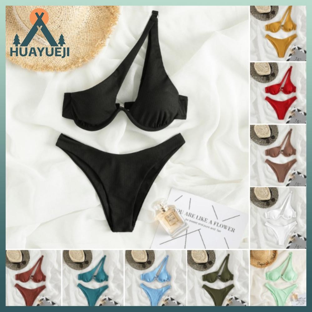 Tag : HUAYUEJI Bikini Swimsuit Ribbed Cut Out Split Bikini Fashion Sexy Two Piece One Shoulder Strap