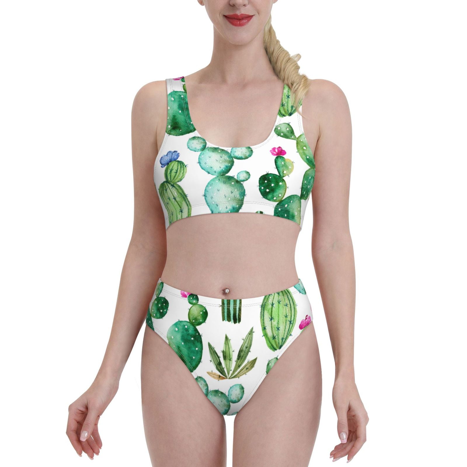 Haiem Cactus Plants Women S Bikini Set Two Piece High Waisted Bathing Suit With Square Neck