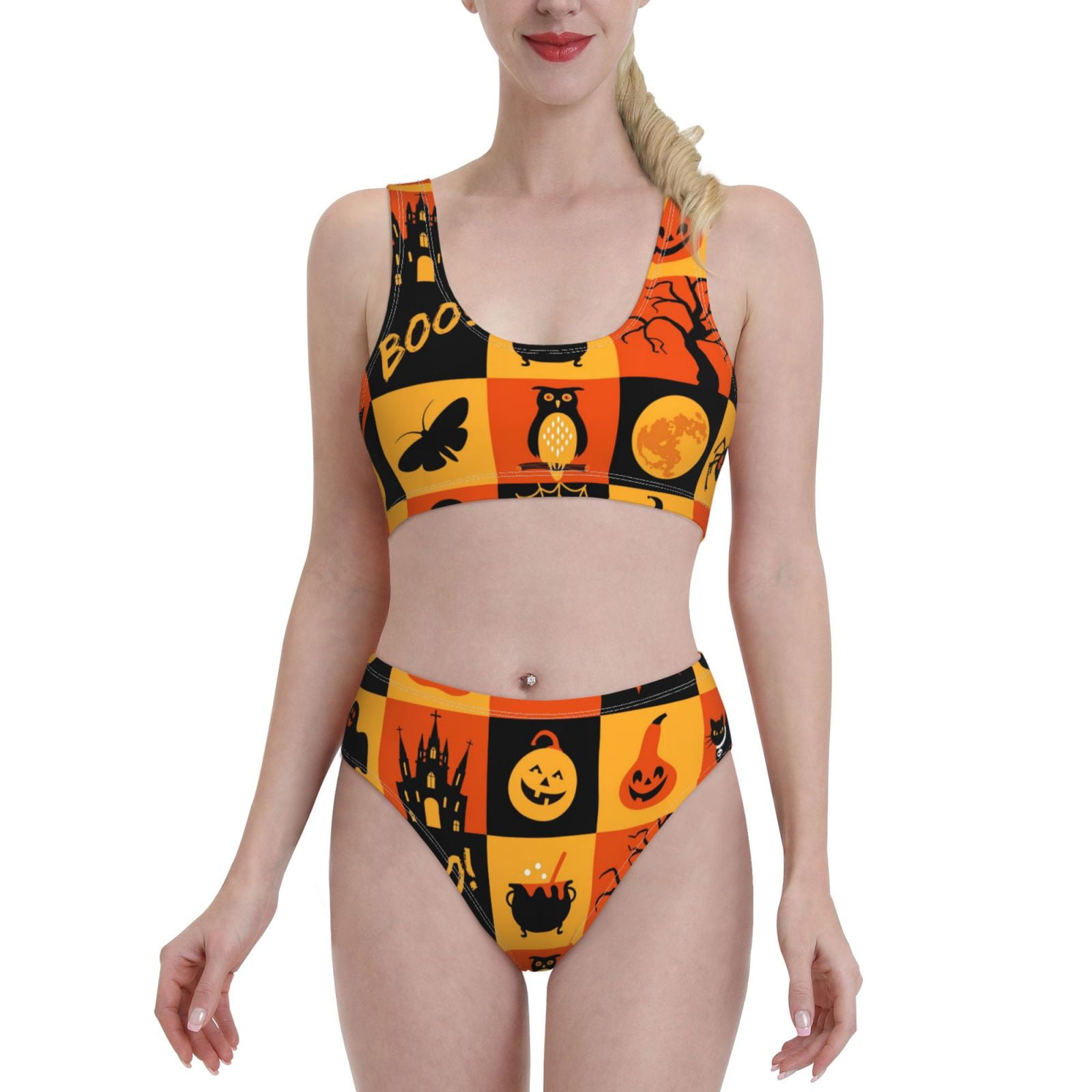 Tag : Haiem Halloween Banner Symbols Women S High Waisted Bikini Set Two Piece Bathing Suits High Cut