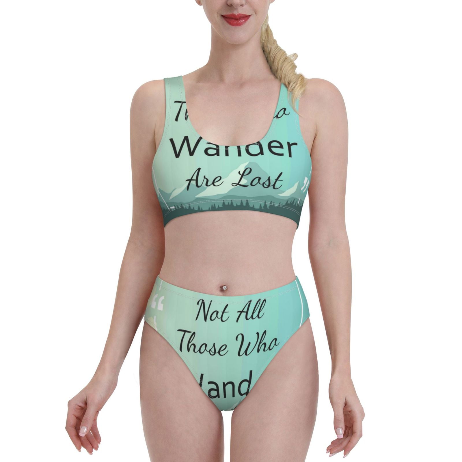 Haiem Not All Those Who Wander Are Lost Women S Bikini Set Two Piece High Waisted Bathing Suit 118064