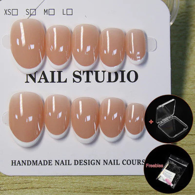 Tag : Handmade Oval Shape French Tip Minimalist Nude Fake Nail Set With Glue Box Simple Beauty