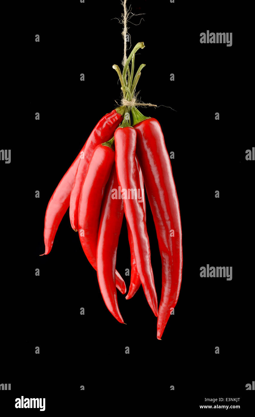 Tag : Hanged Hot Red Chili Peppers Isolated On Black Background Stock Photo Alamy