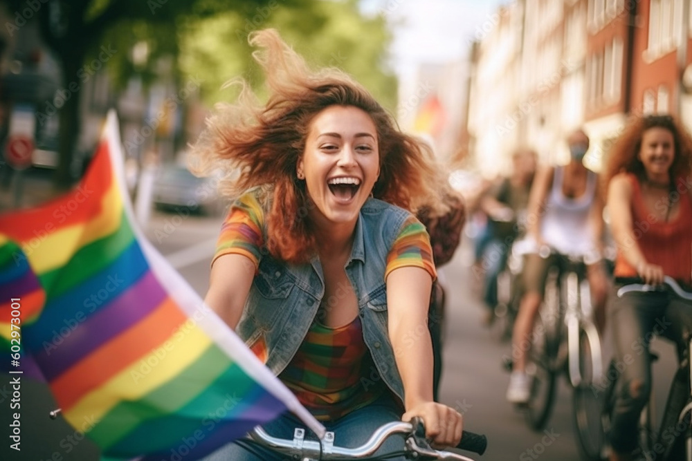 Happy Generative AI Friends Cycling At LGBTQ Gay Pride Parade In Amsterdam Love In The LGBTQ is a popular picture for sexy and hot.