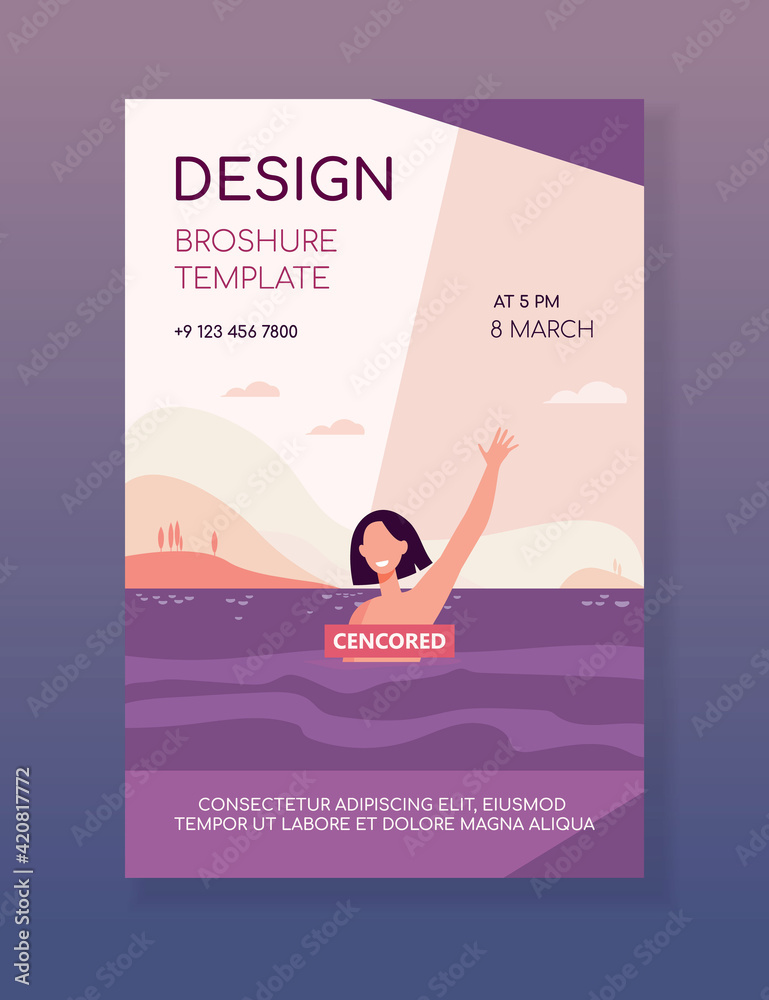 Happy Woman Enjoying Bathing In Sea Topless Censored Banner Nude Person Flat Vector is a popular picture for sexy and hot.