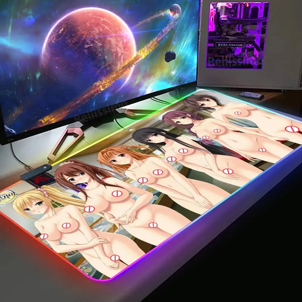 Hentai Anime Girls RGB LED Mouse Pad Uncensored Sexy Hot Nude Girl Game Pad Gamer Keyboard is a popular picture for sexy and hot.