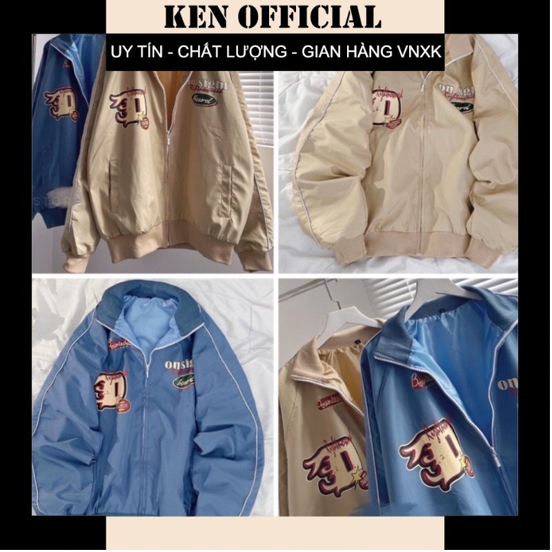 Hot Áo Bomber Dù 2 Lớp D On Sight 2 Mầu Kem Xanh Unisex Nam Nữ Hàng sẵn Ken Official 90060