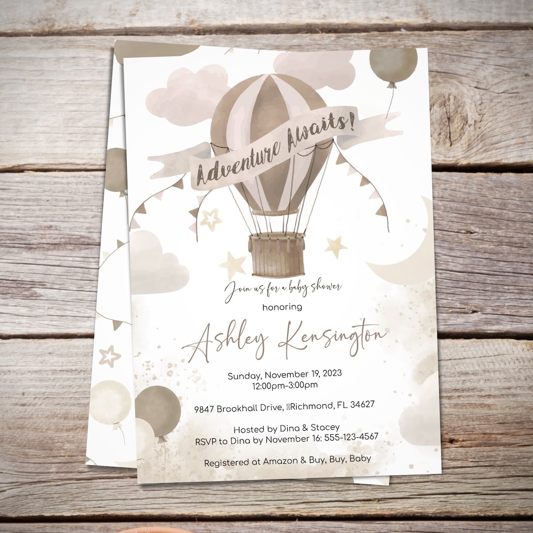 Hot Air Balloon Baby Shower Invite Adventure Awaits Neutral Earth Tones Instant Digital is a popular picture for sexy and hot.