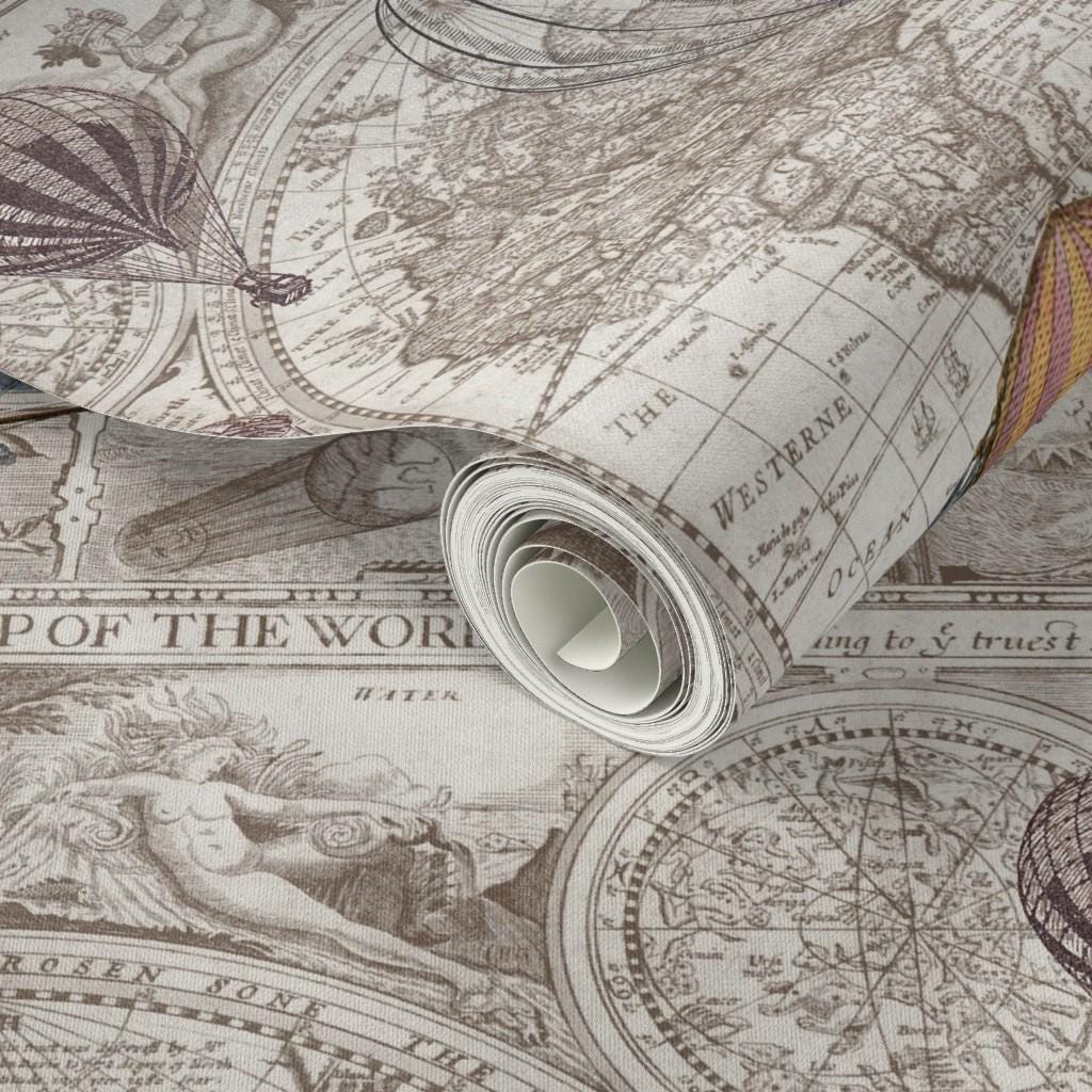 Tag : Hot Air Balloons Wallpaper Steampunk Map By Aftermyart Beige Brown Custom Printed Removable
