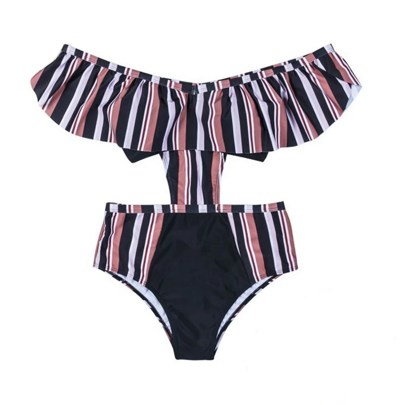 Tag : Hot High Waist A Word Shoulder Swimsuit Bather Women Sexy One Piece Bandage Backless Swimsuit