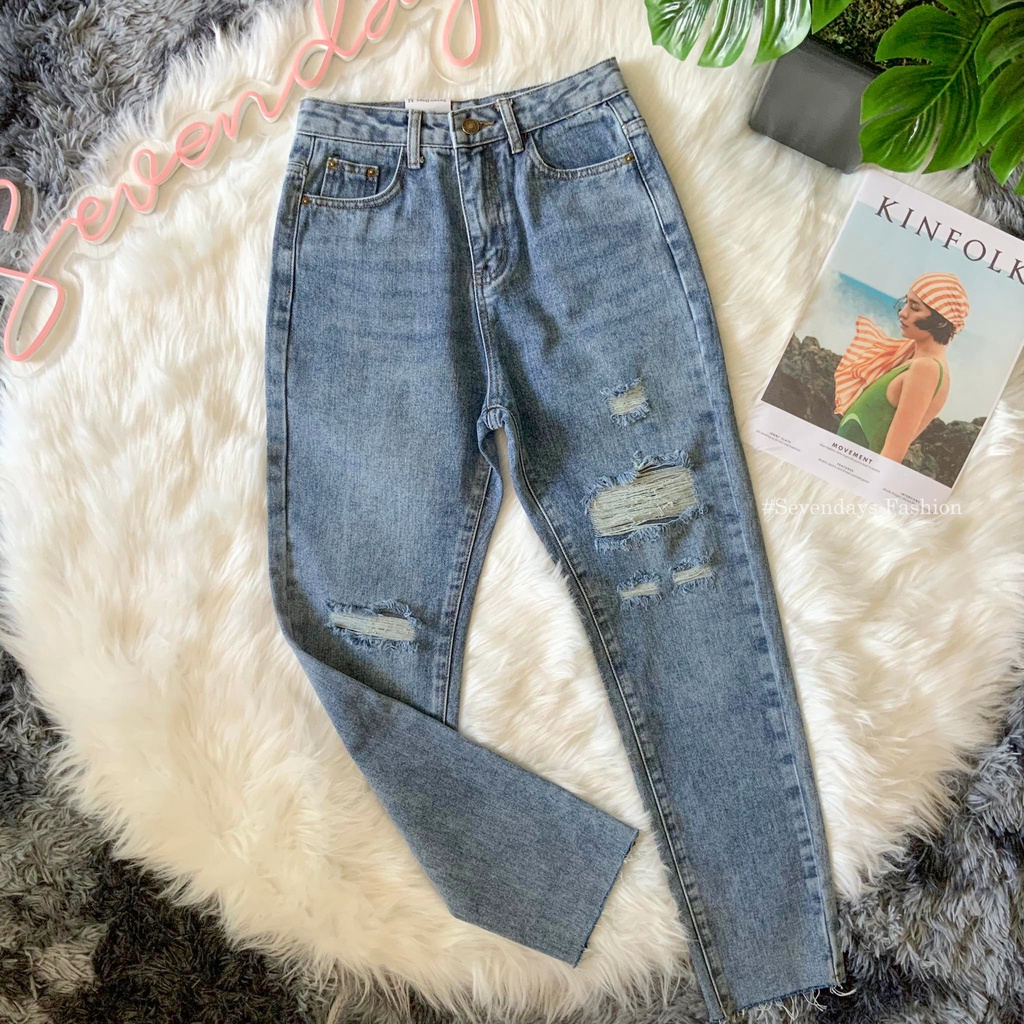 Tag : Hot Item2906 กางเกง กางเกงขายาวเอวสง กางเกงยนสทรงบอยสลม รนฮอต ทรงเอวสงแตงขาดเกสวย ผา