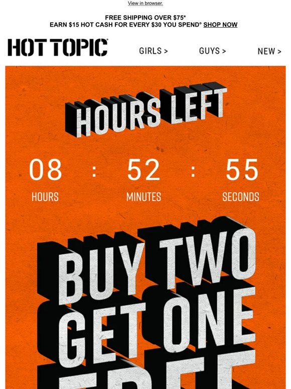 Tag : Hot Topic HOURS LEFT B2G1 Free Ends Later Today Milled