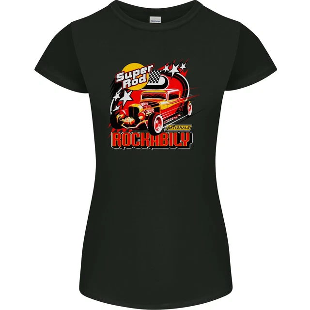 Hot Trending Tee With Rockabilly Hot Rod Hotrod Dragster Womens Womens Petite Cut T Shirt 60520