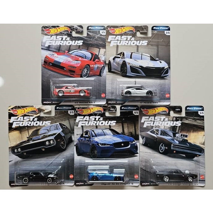 Tag : Hot Wheels Fast Furious Full Force Mazda RX Acura NSX Plymouth Jaguar Dodge Charger R