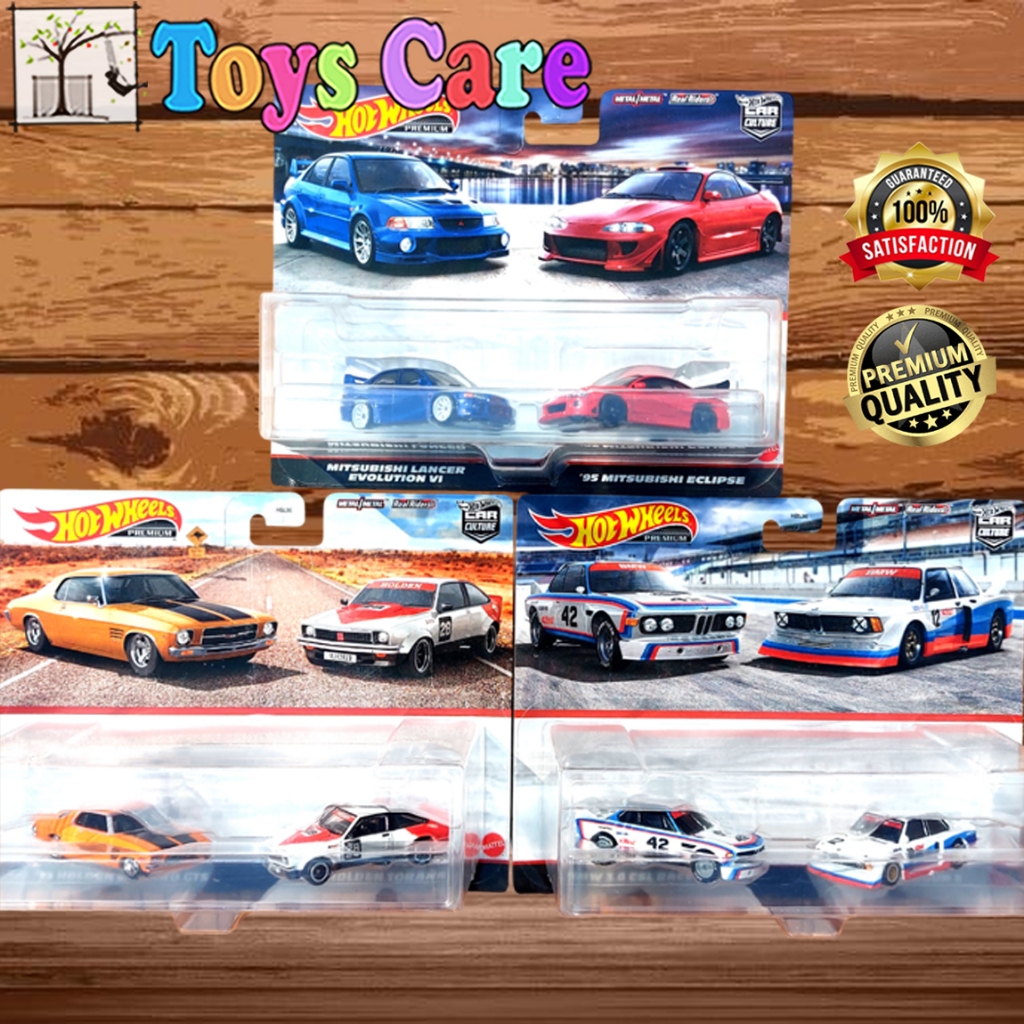 Tag : Hot Wheels Premium 2 Pack Lot J Mitsubishi Lancer Evo Eclipse Holden Monaro Tonara BMW CSL Race