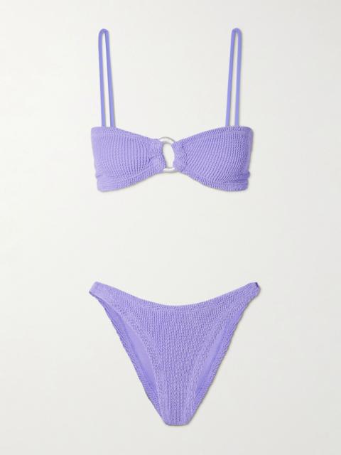 Hunza G Misty Faux Pearl Embellished Seersucker Bikini Lilac REVERSIBLE is a popular picture for sexy and hot.