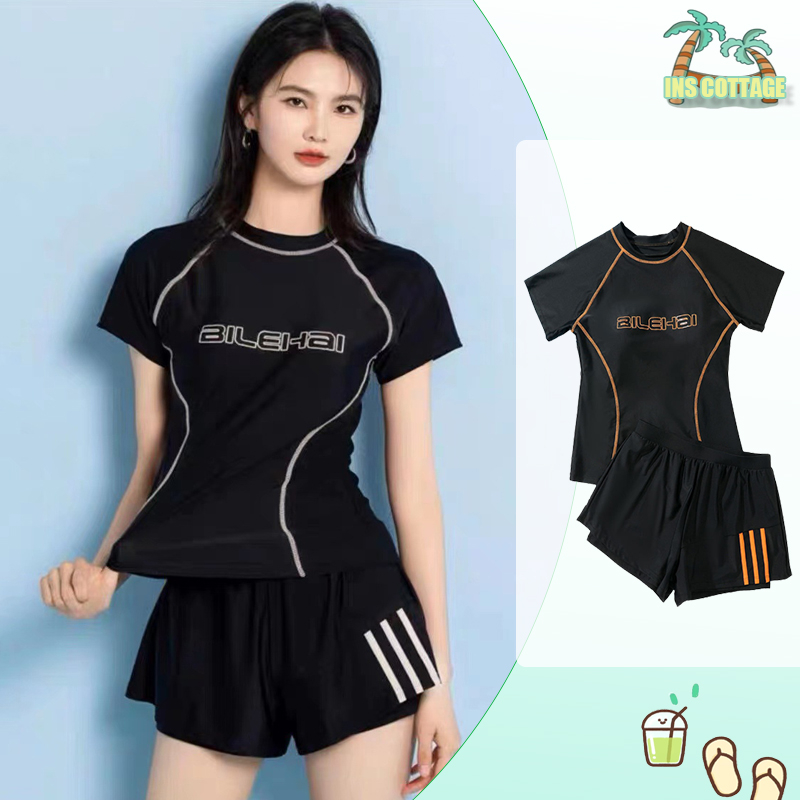 INSđồ bơi nữ kín đáo Bikini đi biển nữ du lịch kín đáo đùi ngắn Tay đi biển 2 mảnh kiểu Đẹp Co