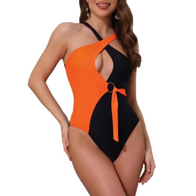 INSPIRE CHIC Women S Criss Cross Color Block Monokini Bikini Set O Ring Side Tie Strappy 27808