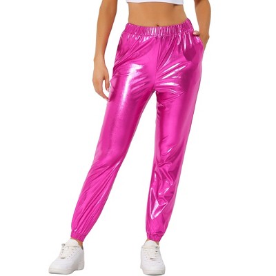 INSPIRE CHIC Women S Metallic Shiny Sparkle Elastic Waist Pants Hot Pink Large Target