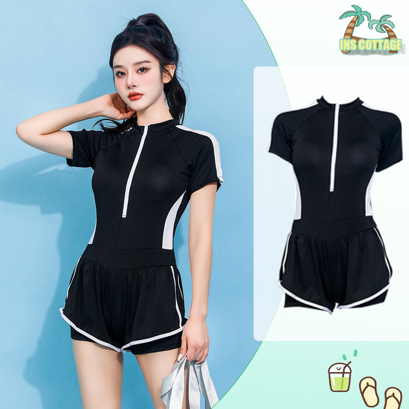 Tag : INSbộ bơi nữ bikini 1 mảnh liền mảnh bộ bơi liền thân nữ có tay khoá kéo màu đen sọc trắng