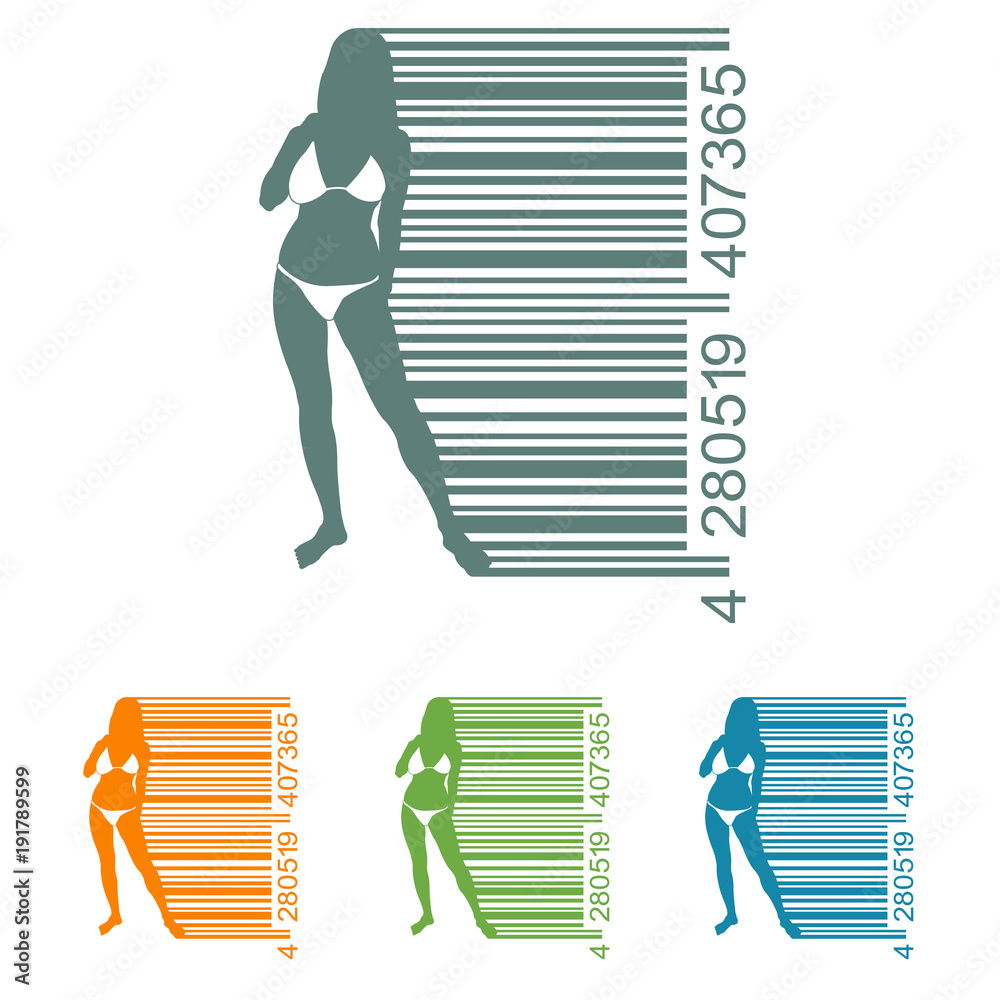 Icono Plano Codigo De Barras Con Chica En Bikini Varios Colores Stock Vector Adobe Stock 148720