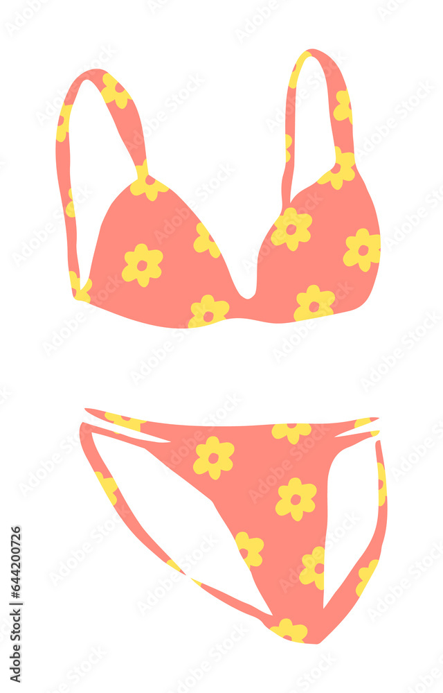 Tag : Ilustración de Stock Swimsuit bikini with floral print or lingerie bra and panties hand painted