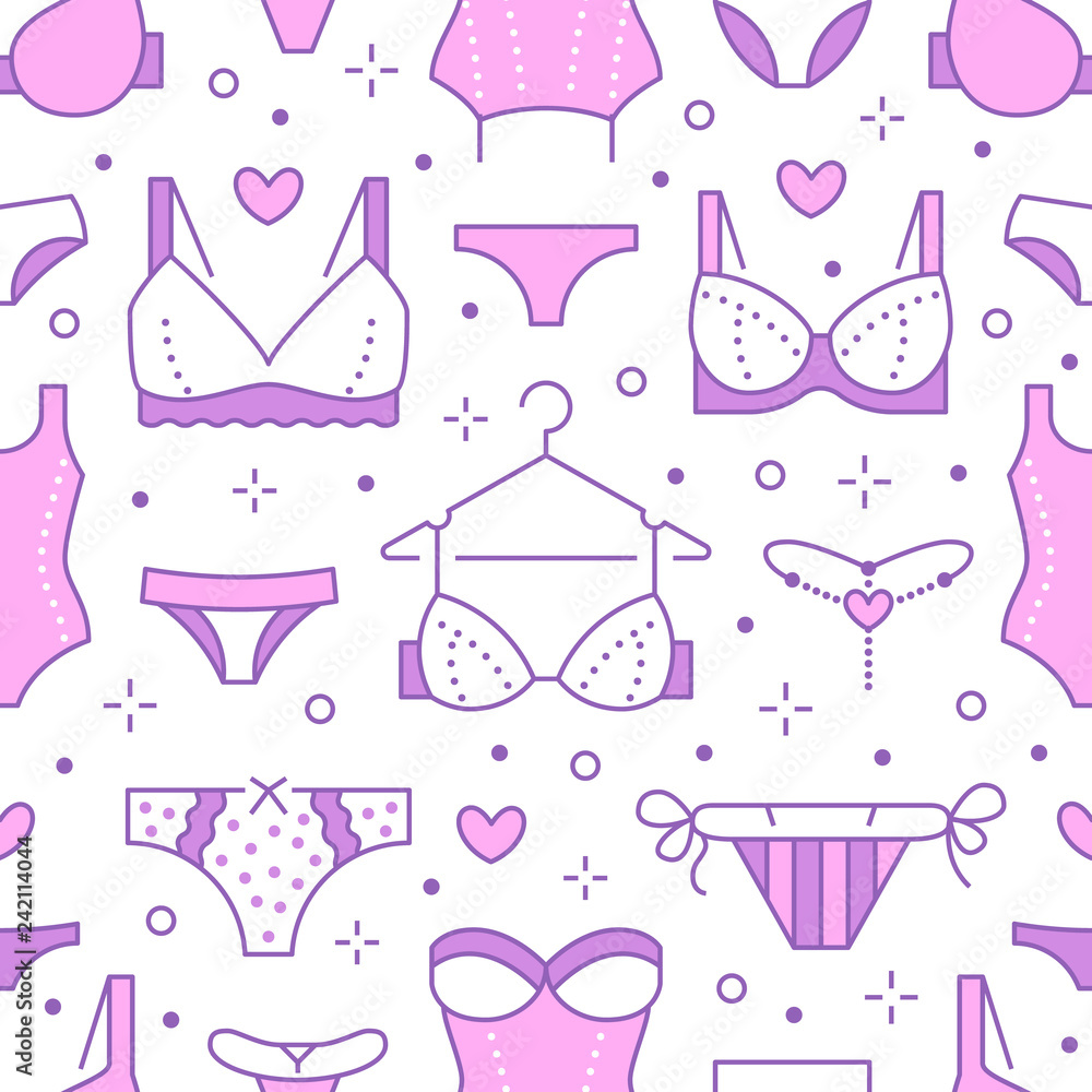 Tag : Image Vectorielle Stock Lingerie Seamless Pattern With Flat Line Icons Of Bra Types Panties