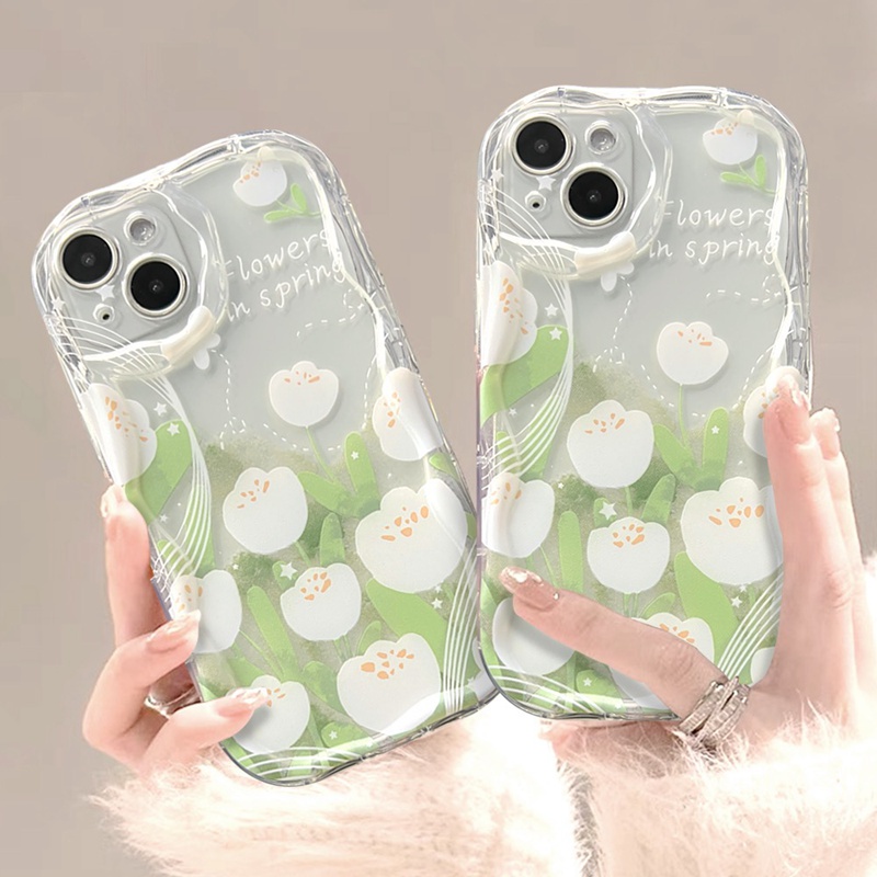 Tag : Infinix Hot 30 30i 20i 9 12 20 Play White Tulip Phone Case Flower 3D Wavy Curved Edge Soft Tpu