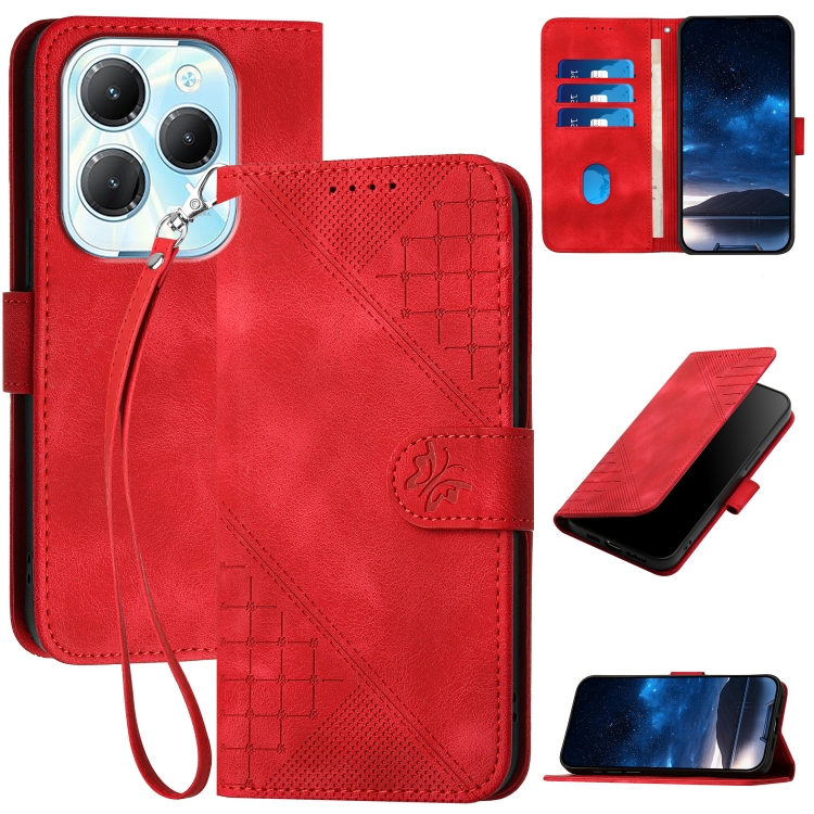 Tag : Infinix Hot 40 Pro 4G YX0080 그리드 버터플라이 엠보싱 패턴 플립 가죽 폰 케이스 끈 포함 레드
