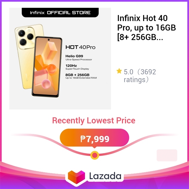 Tag : Infinix Hot 40 Pro Up To 16GB 8 256GB MediaTek Helio G99 1 Year Local Warranty