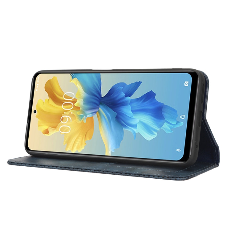 Infinix Hot X 마그네틱 버클 레트로 텍스처 가죽 전화 케이스 블루 0