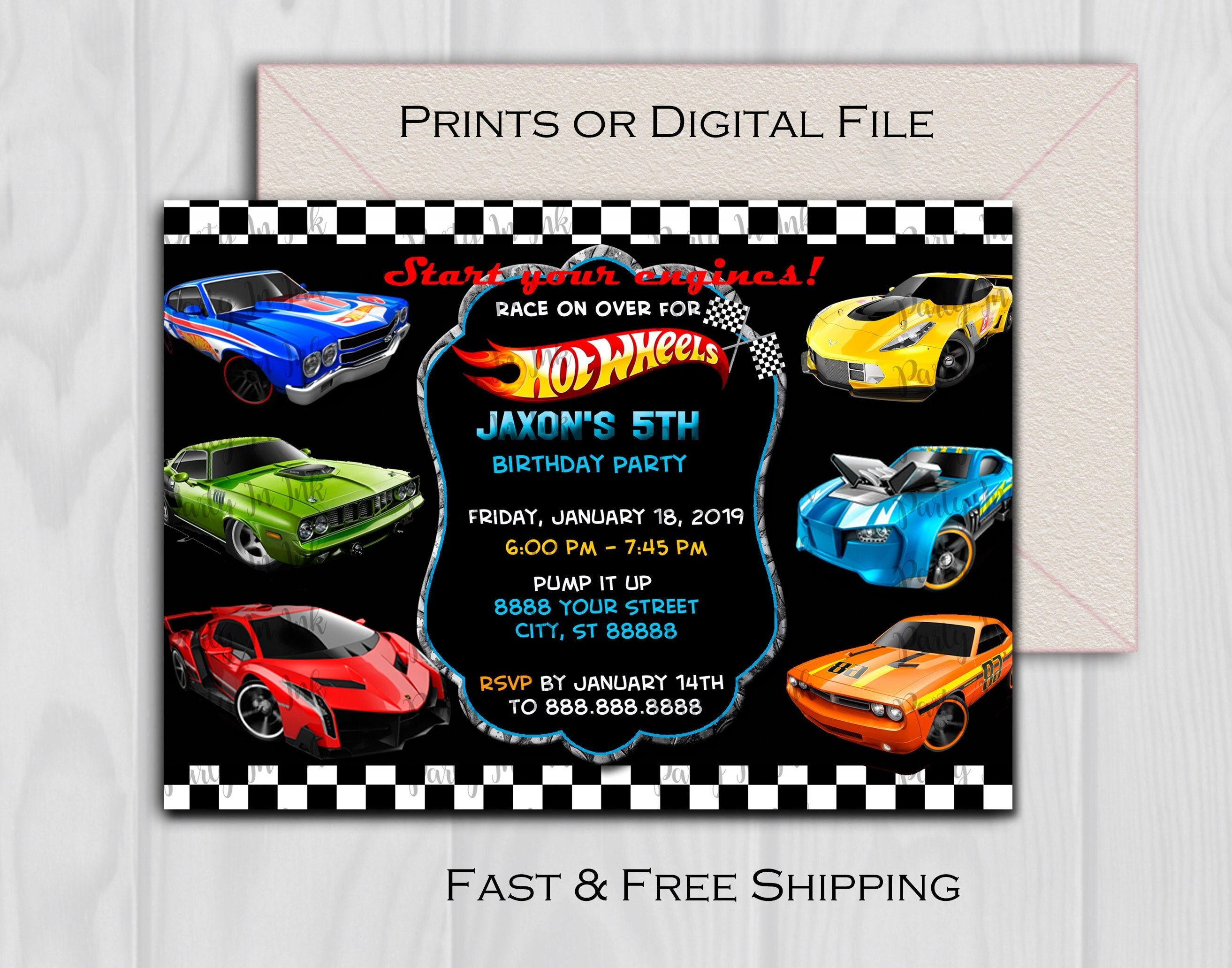 Tag : Invitación de cumpleaños de Hot Wheels bandera de damas 5x7 Etsy España